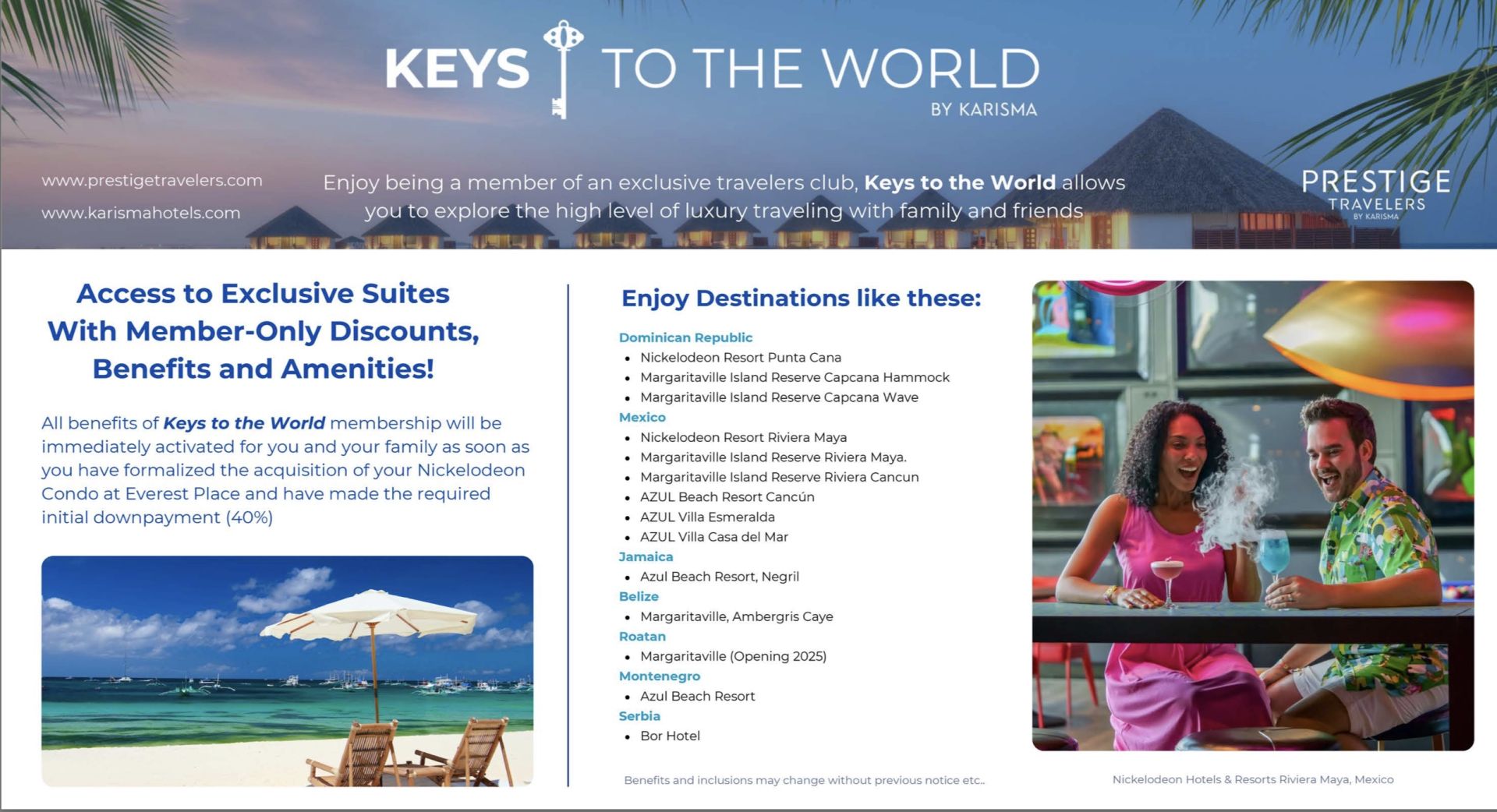 Al comprar, te inscribes automáticamente en el club de viajes “Keys to the World”, con un valor de USD $50,000.